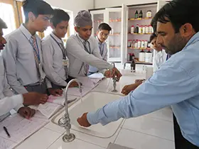 Chemistry lab is big and spacious and can accommodate around 30 students at a time. It is well lit and airy keeping in mind the fumes of chemicals and the acids used for experiments. It is well equipped and has the modern infrastructure needed to create and sustain interest of students.
